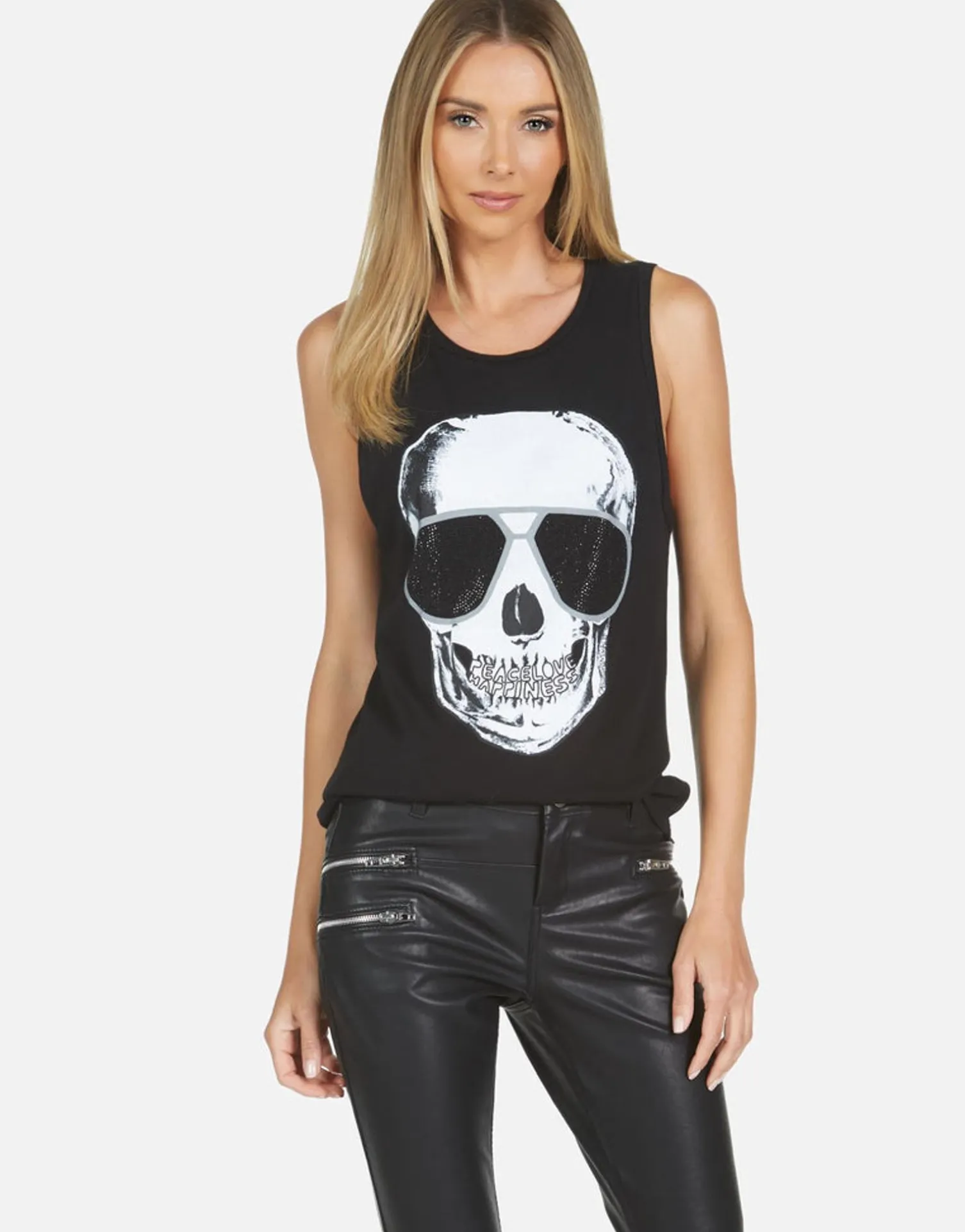 Cool Skull Printed On Ultra Soft Lightweight Tank In Black By Lauren Moshi.