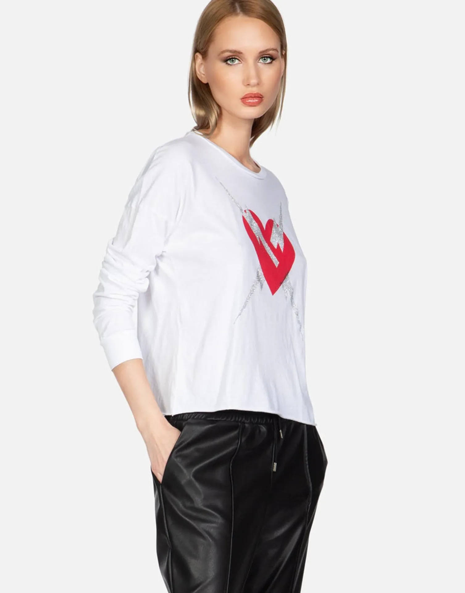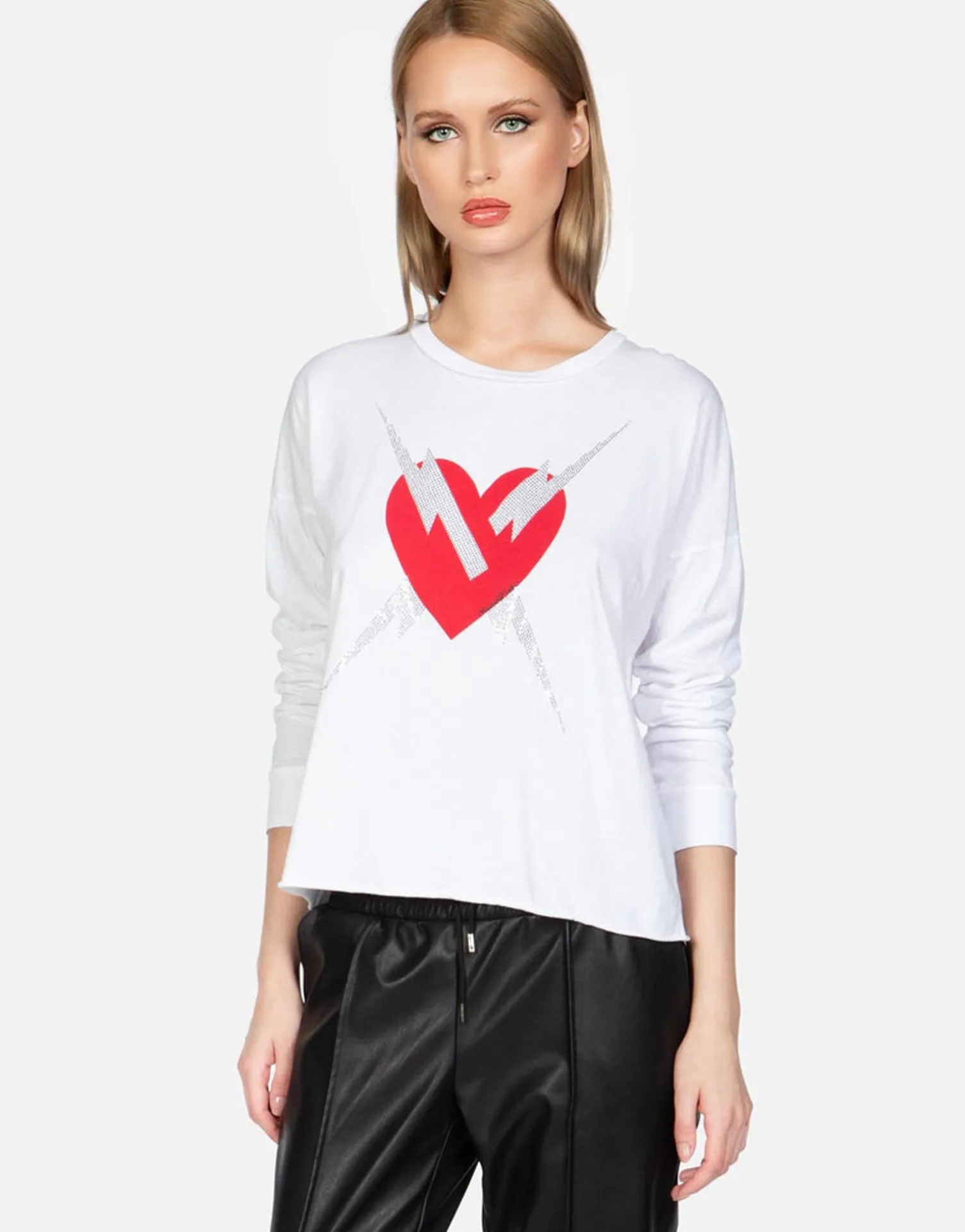 Lightning Love Printed On Ultra Soft Lightweight Tee In White By Lauren Moshi.