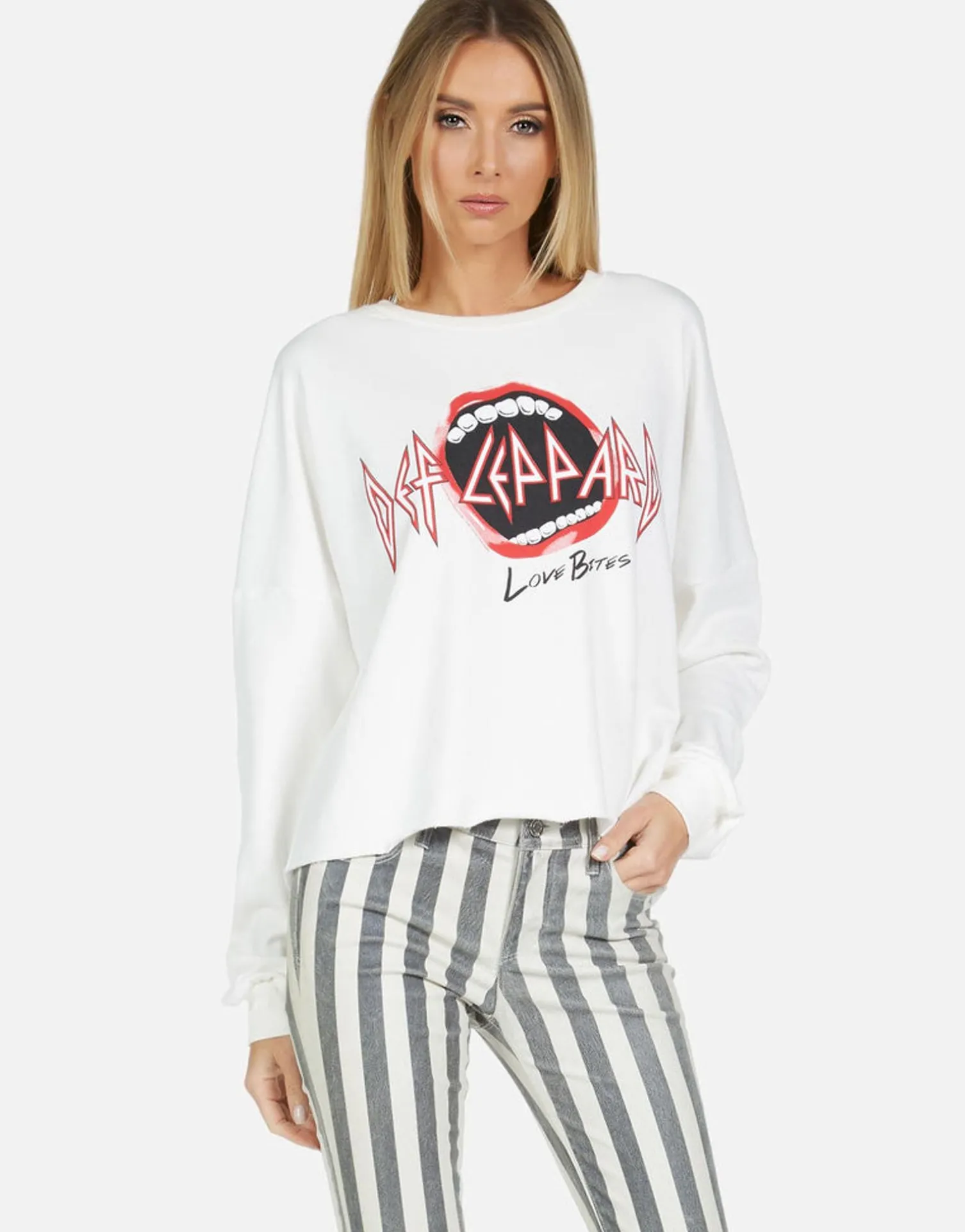 Def Leppard Love Bites Printed On Ultra Soft Lightweight Pullover In Milk By Lauren Moshi.