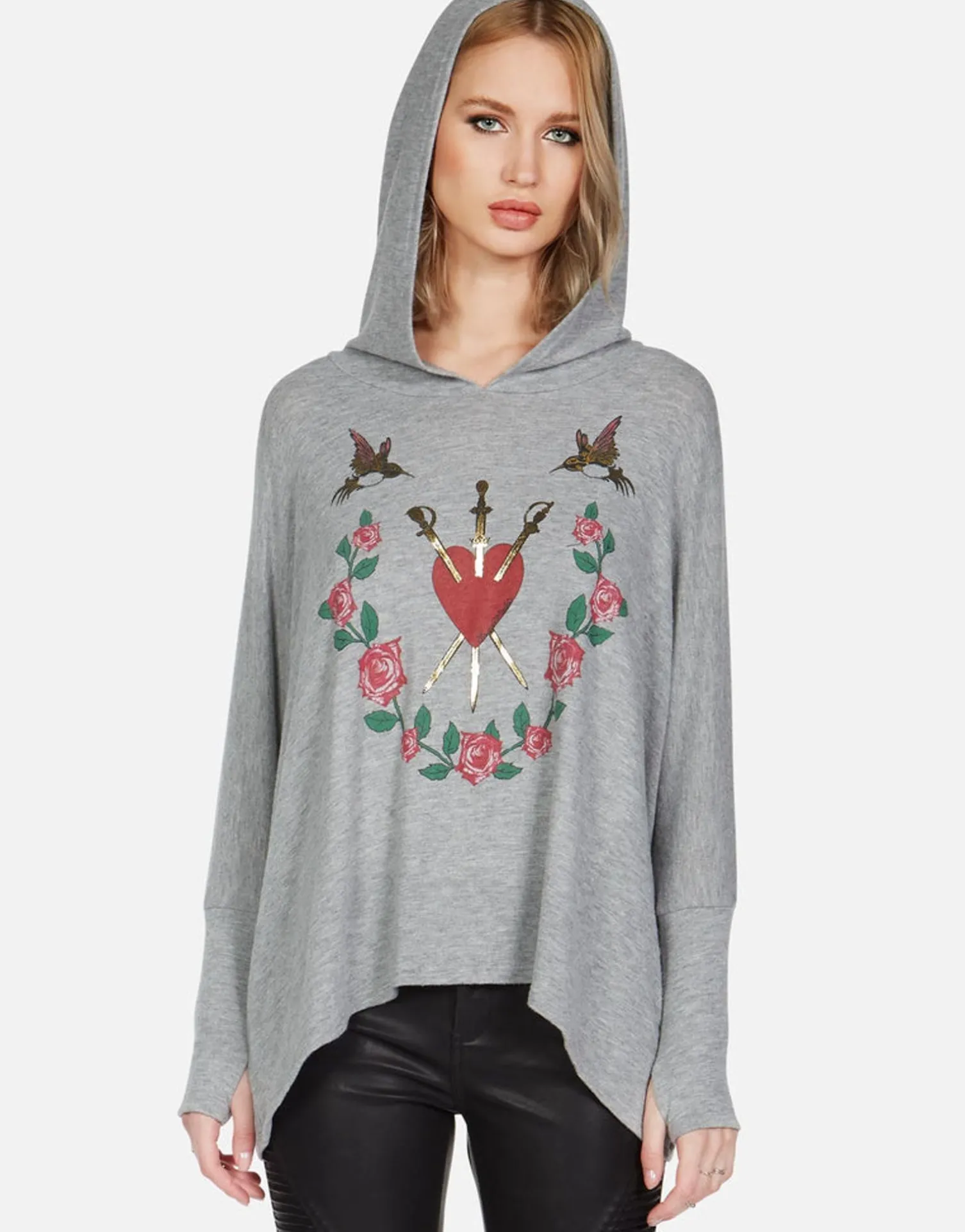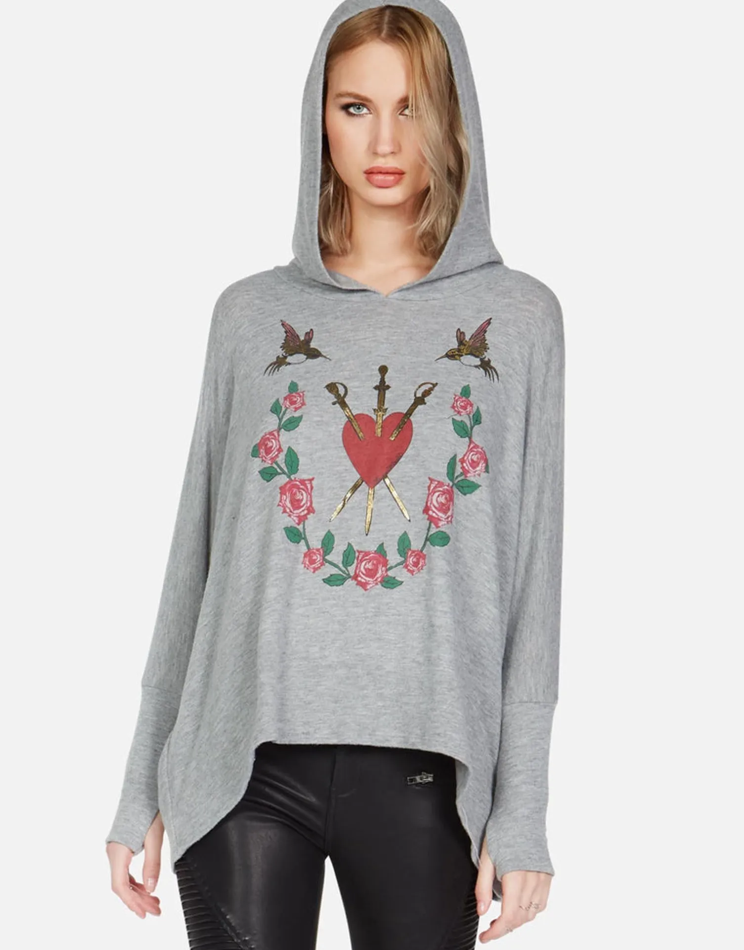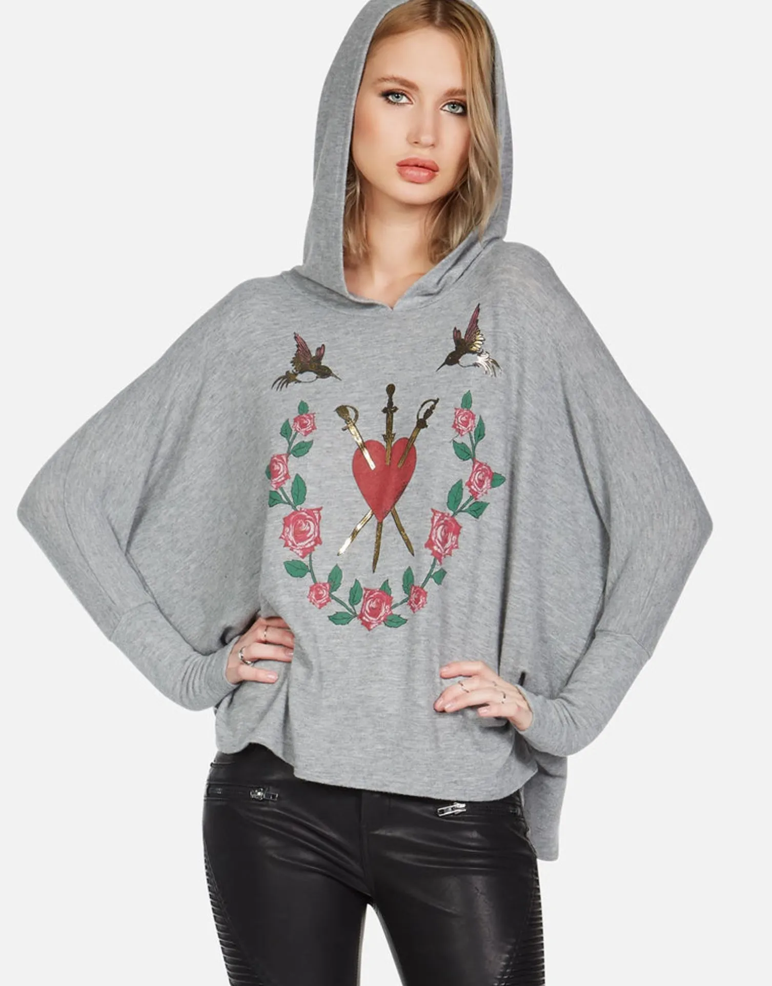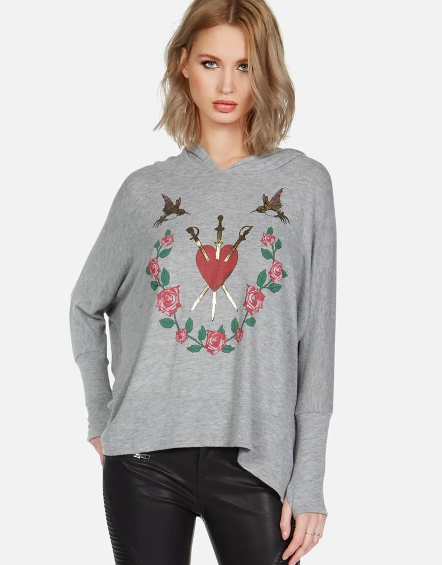 Garden Of Love Printed On Ultra Soft Lightweight Hoodie In Heather Grey By Lauren Moshi.