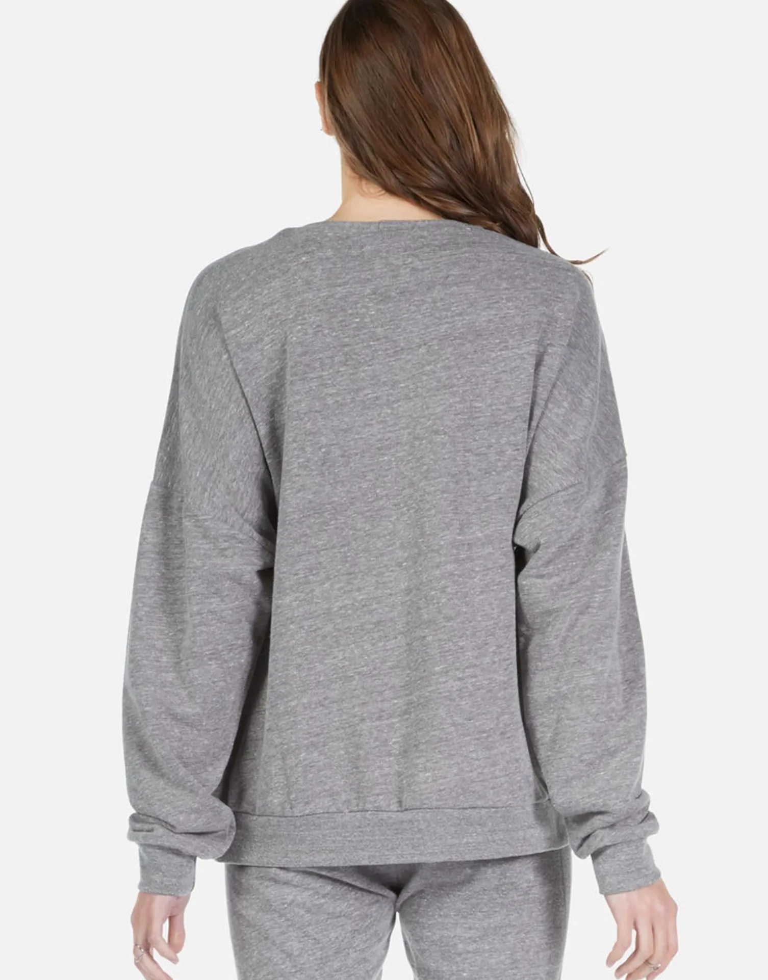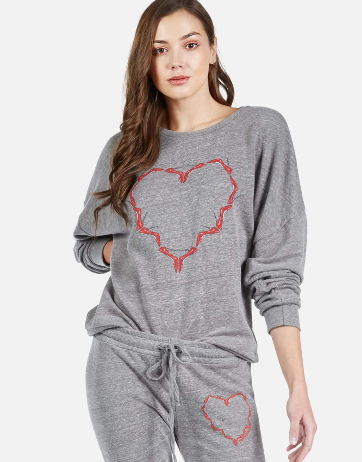 High Heel Heart Printed On Ultra Soft Lightweight Pullover In Heather Grey By Lauren Moshi.