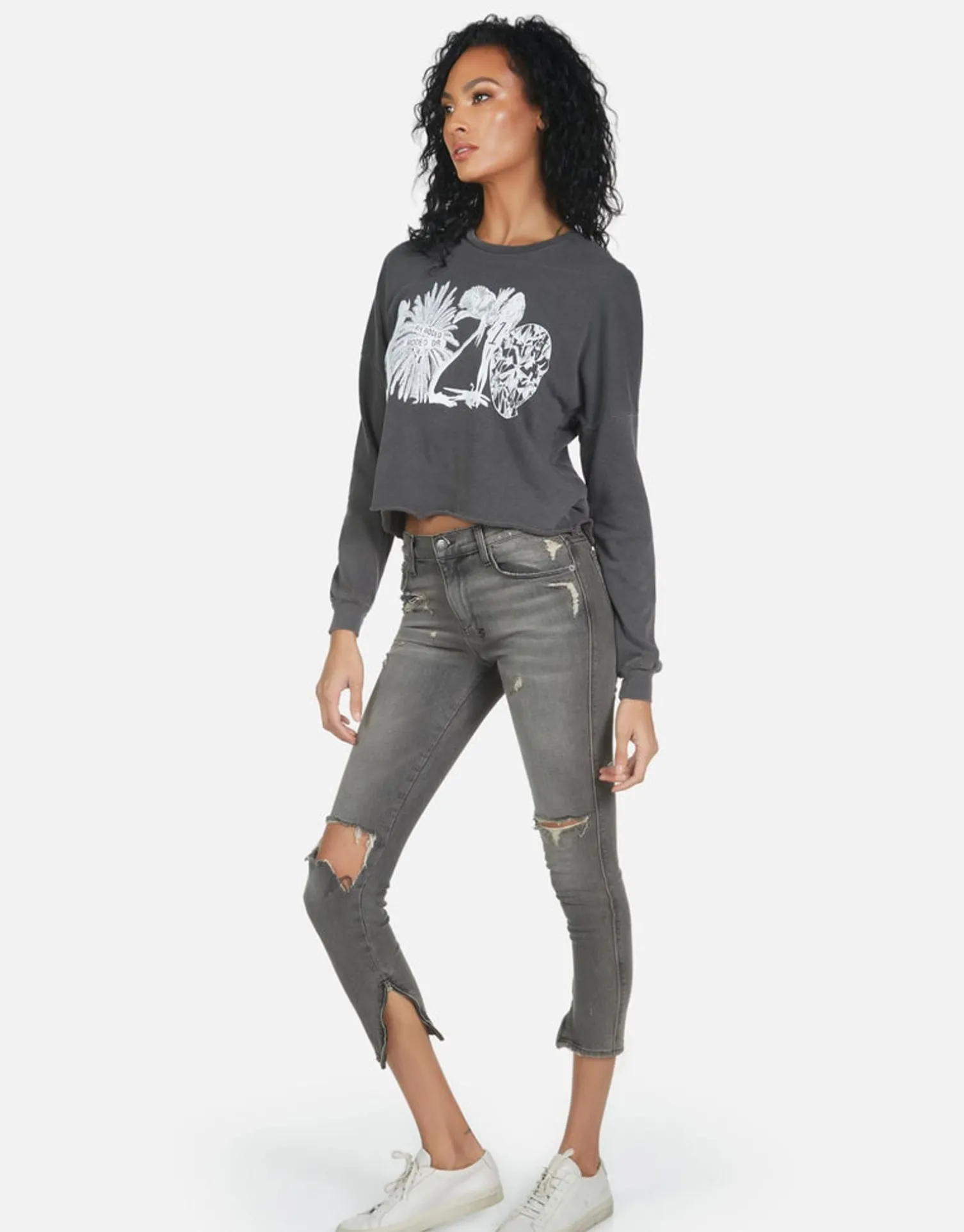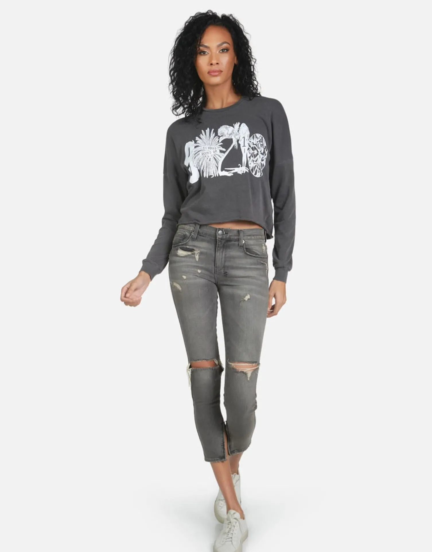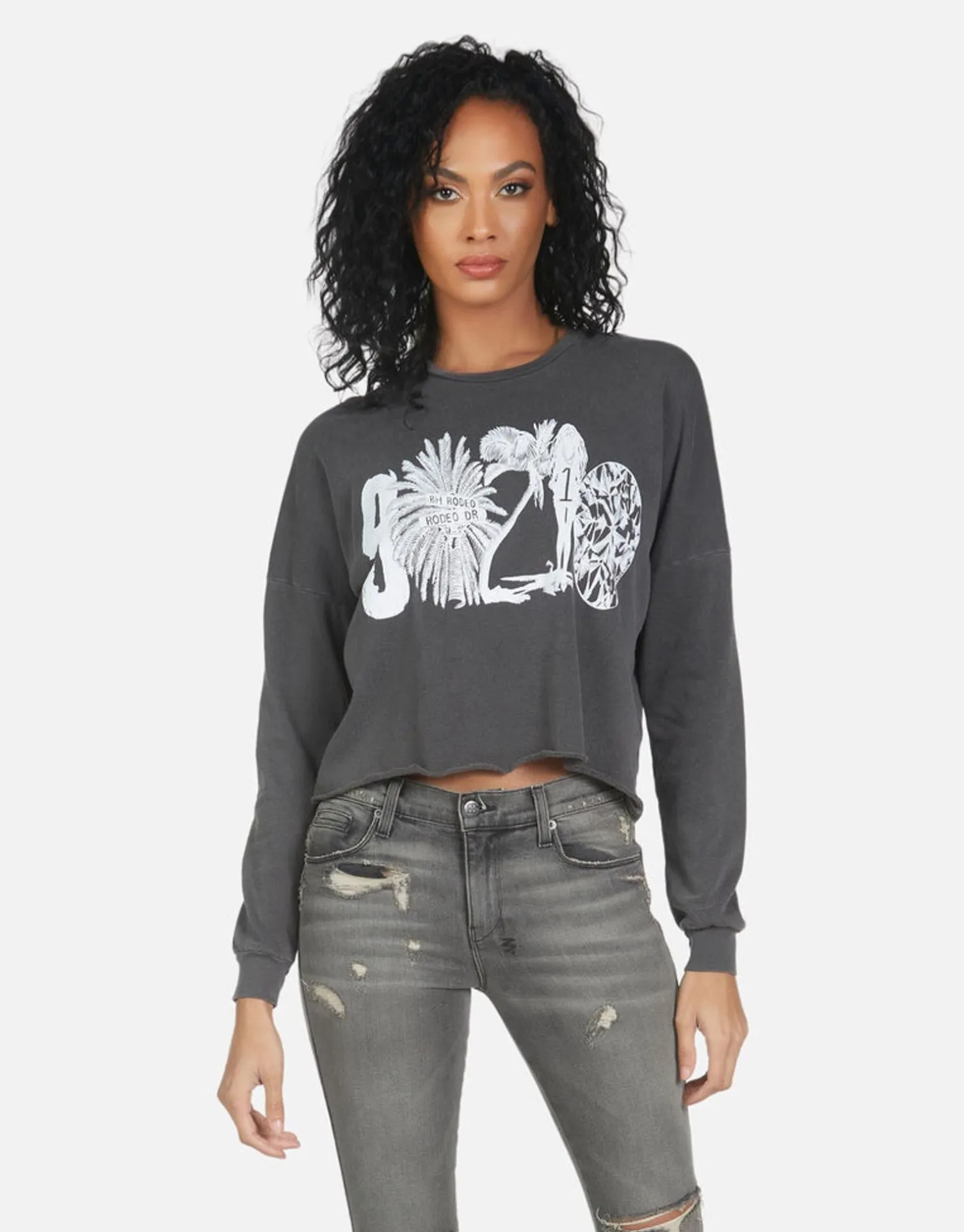 90210 Printed On Ultra Soft Lightweight Pullover In Pigment Black By Lauren Moshi.