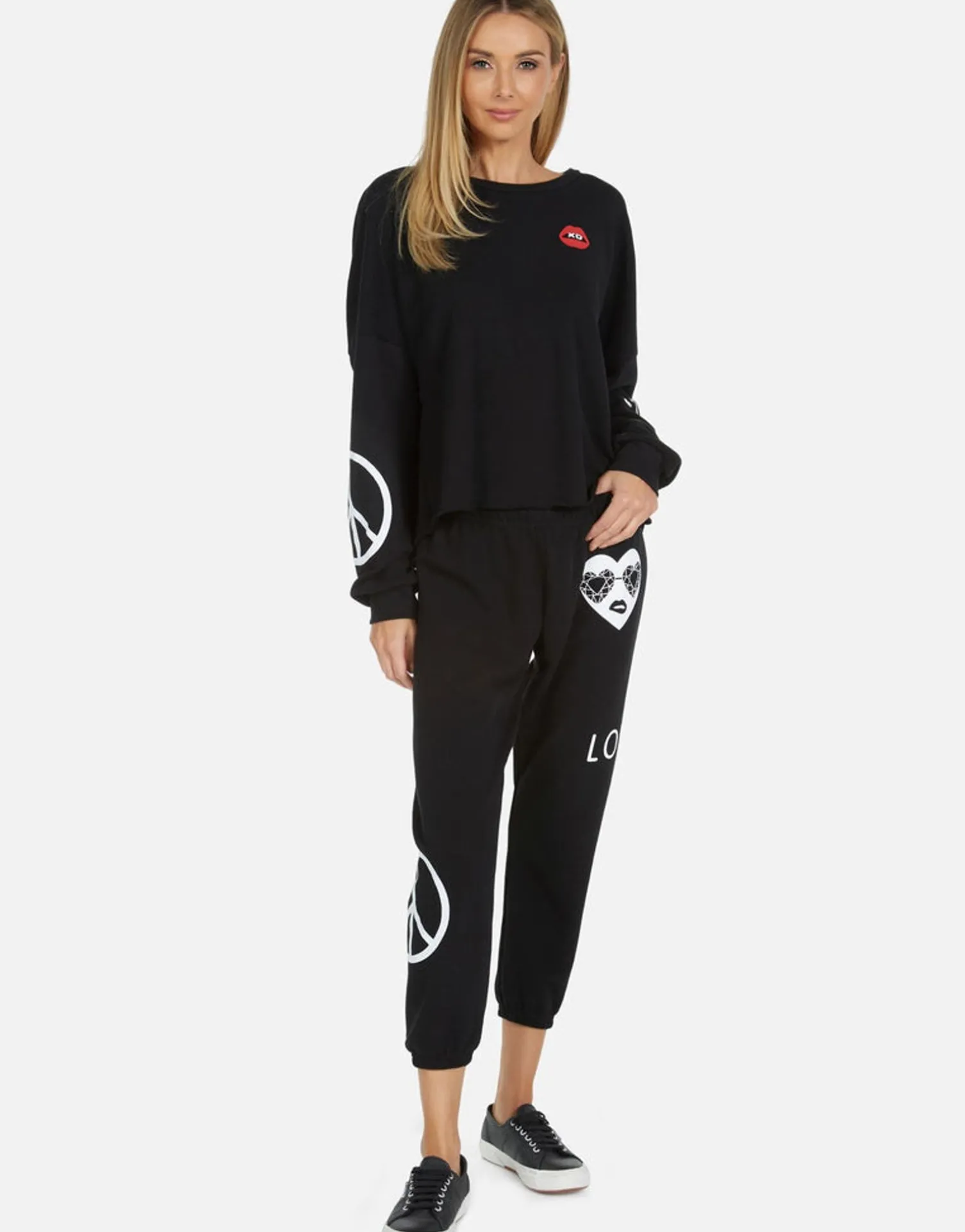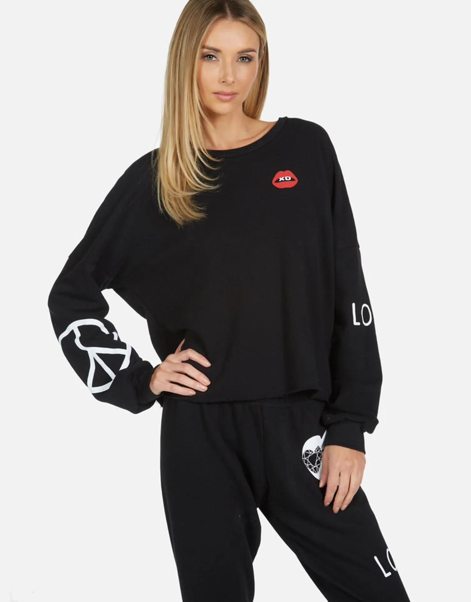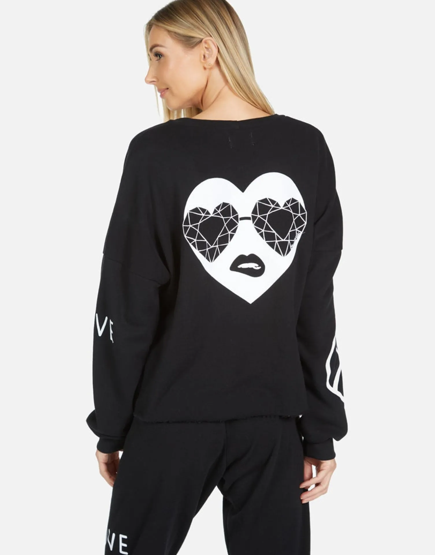 Bling Heart Printed On Ultra Soft Lightweight Pullover In Black By Lauren Moshi.