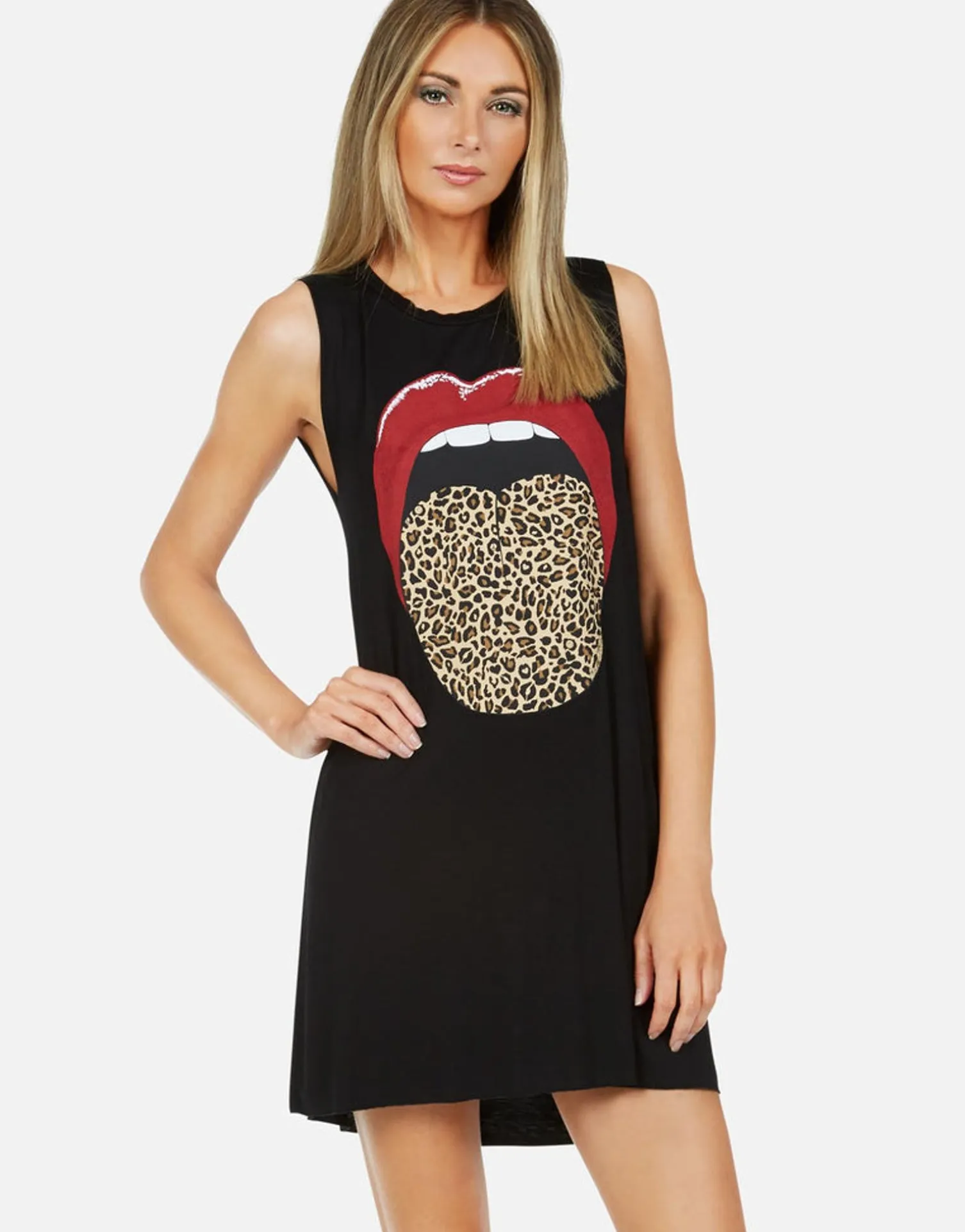 Leopard Tongue Printed On Ultra Soft Lightweight Mini Dress In Black By Lauren Moshi.