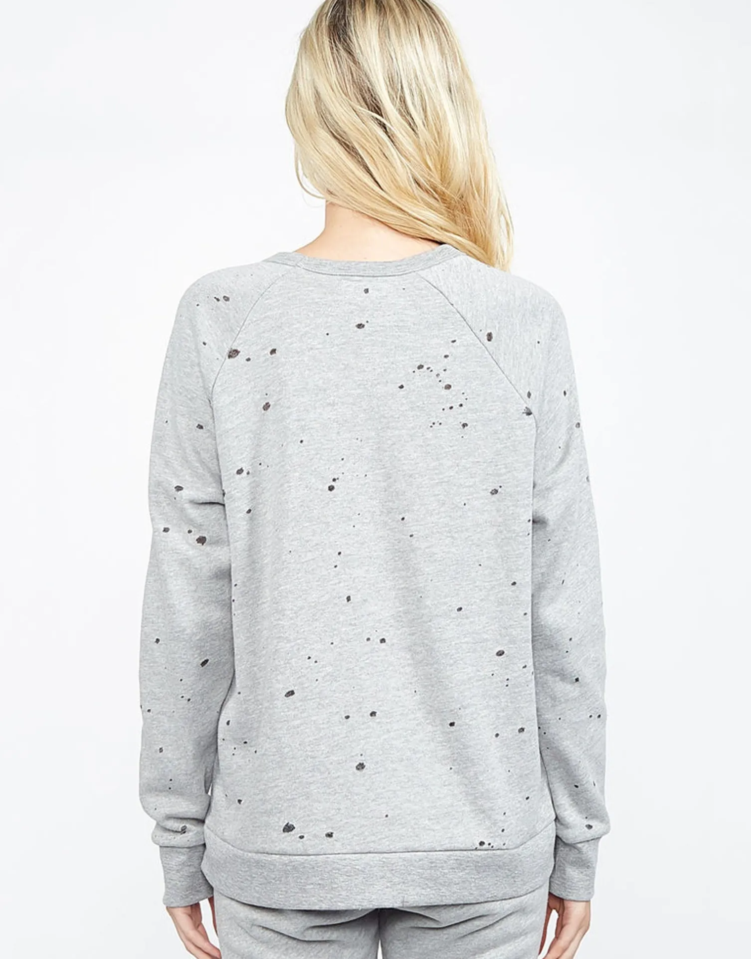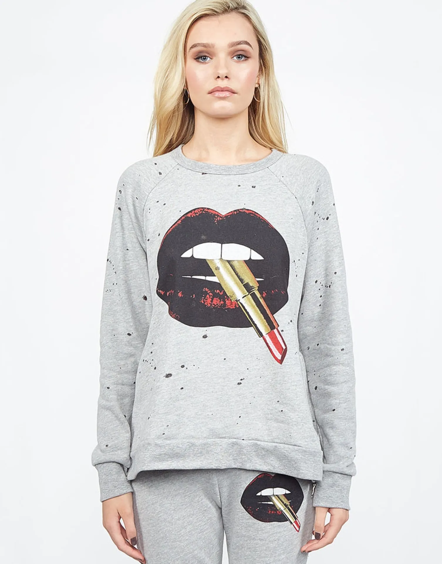 Lipstick Mouth Printed On Ultra Soft Lightweight Pullover In Heather Grey By Lauren Moshi.