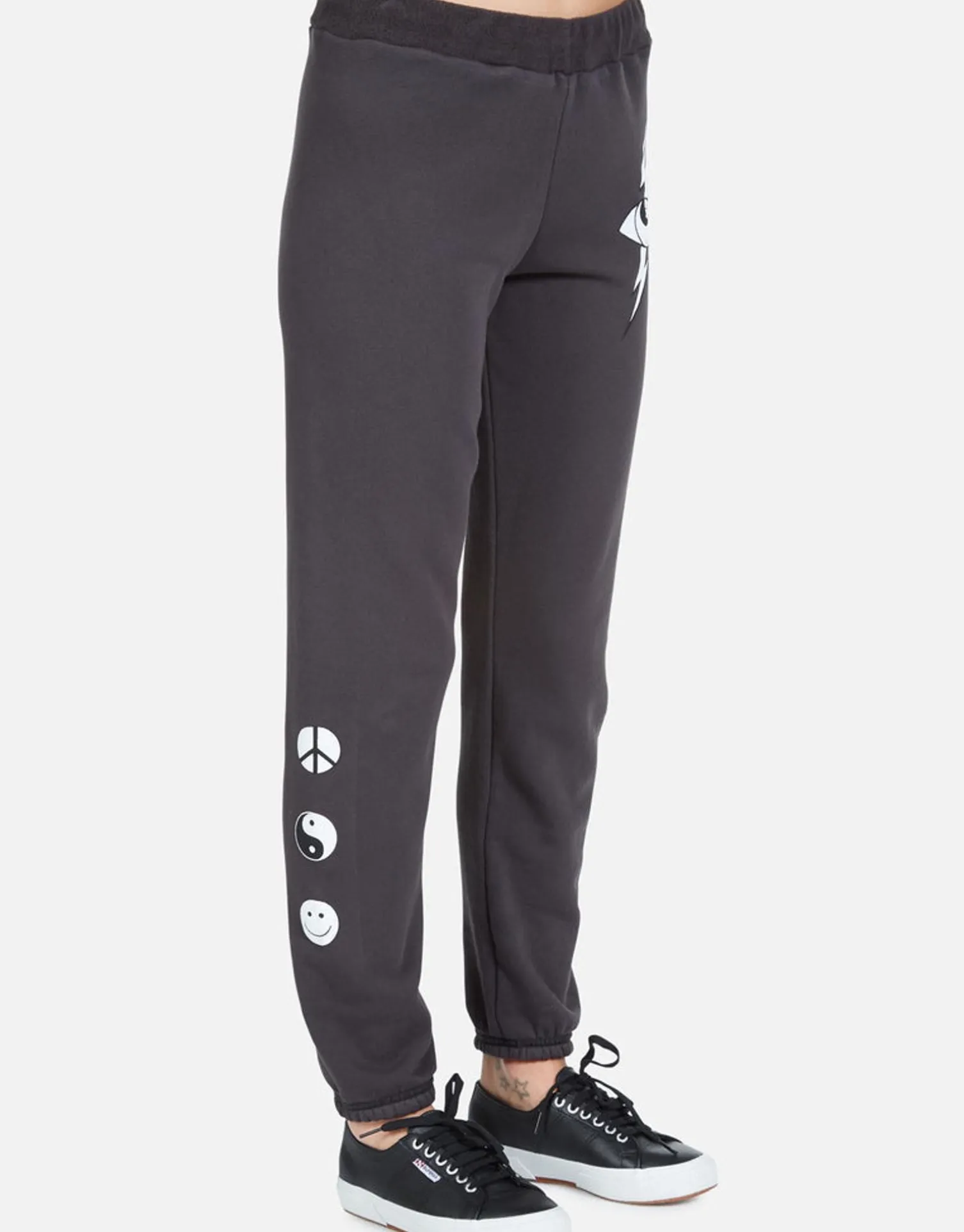 Lightning Star Eye Printed On Ultra Soft Long Sweatpant Onyx By Lauren Moshi.