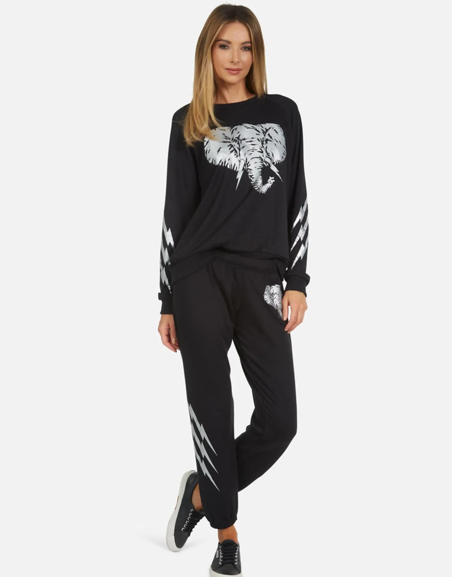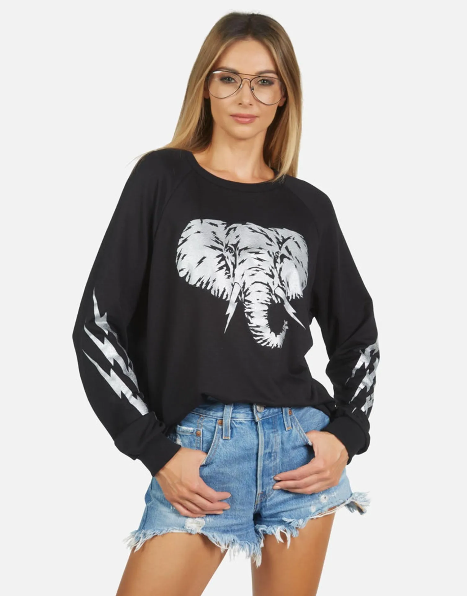 Electric Elephant Printed On Ultra Soft Lightweight Pullover In Black By Lauren Moshi.