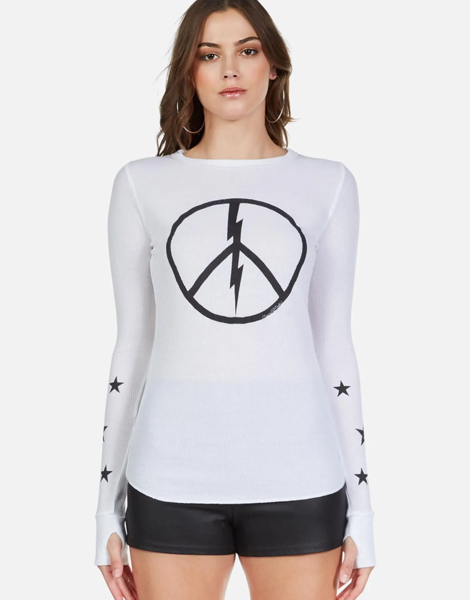 Peace Lightning Star Printed On Ultra Soft Lightweight Thermal In White By Lauren Moshi.