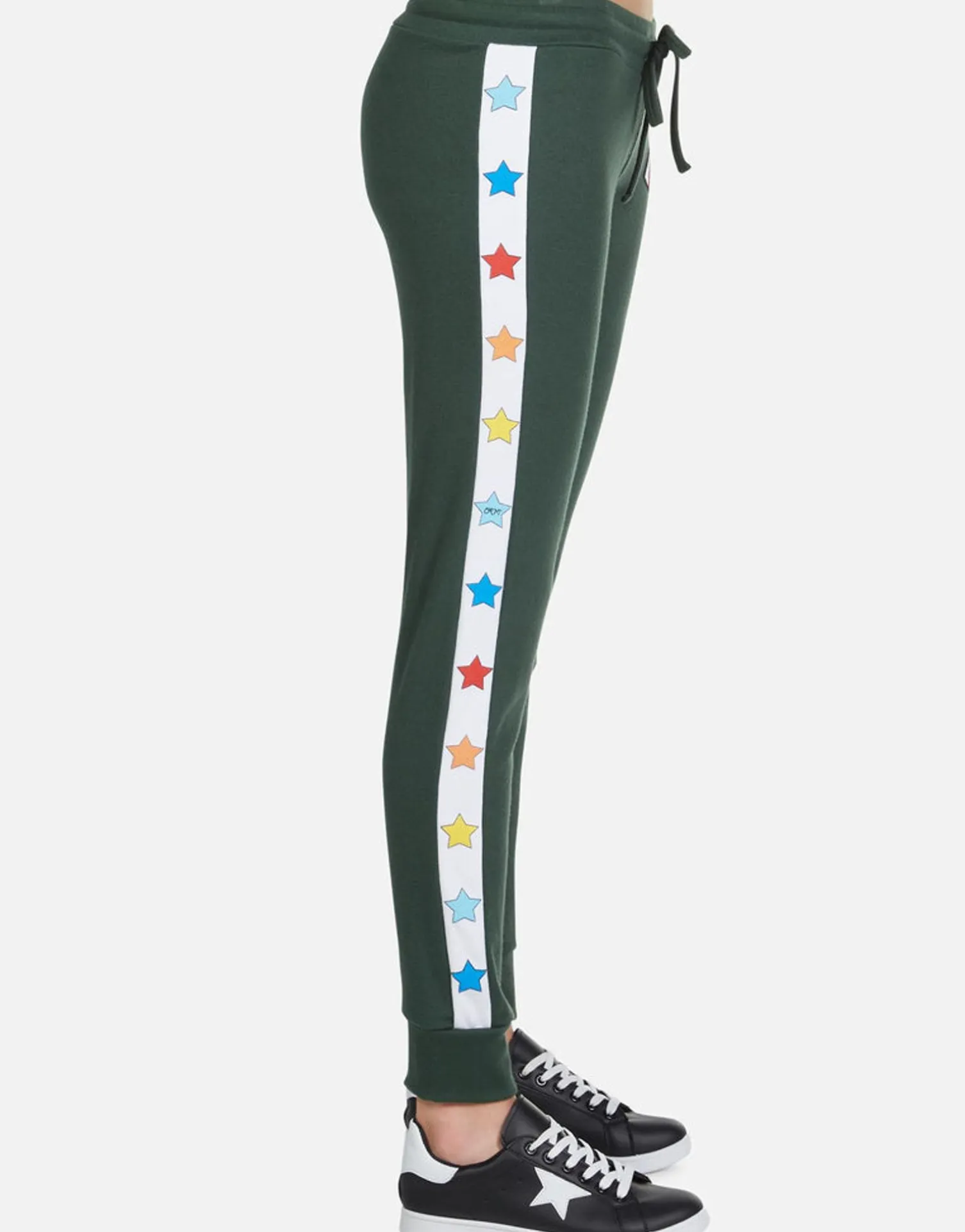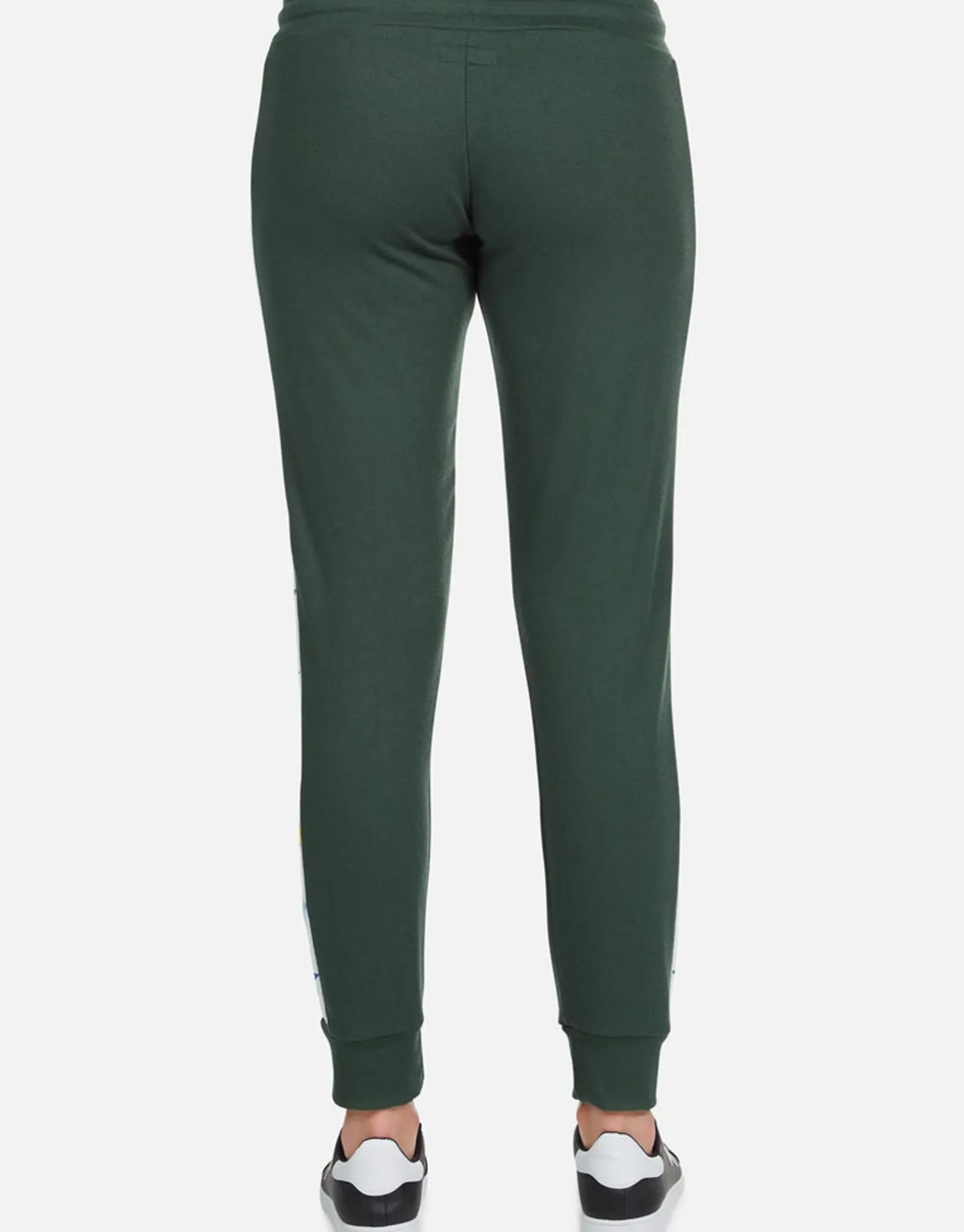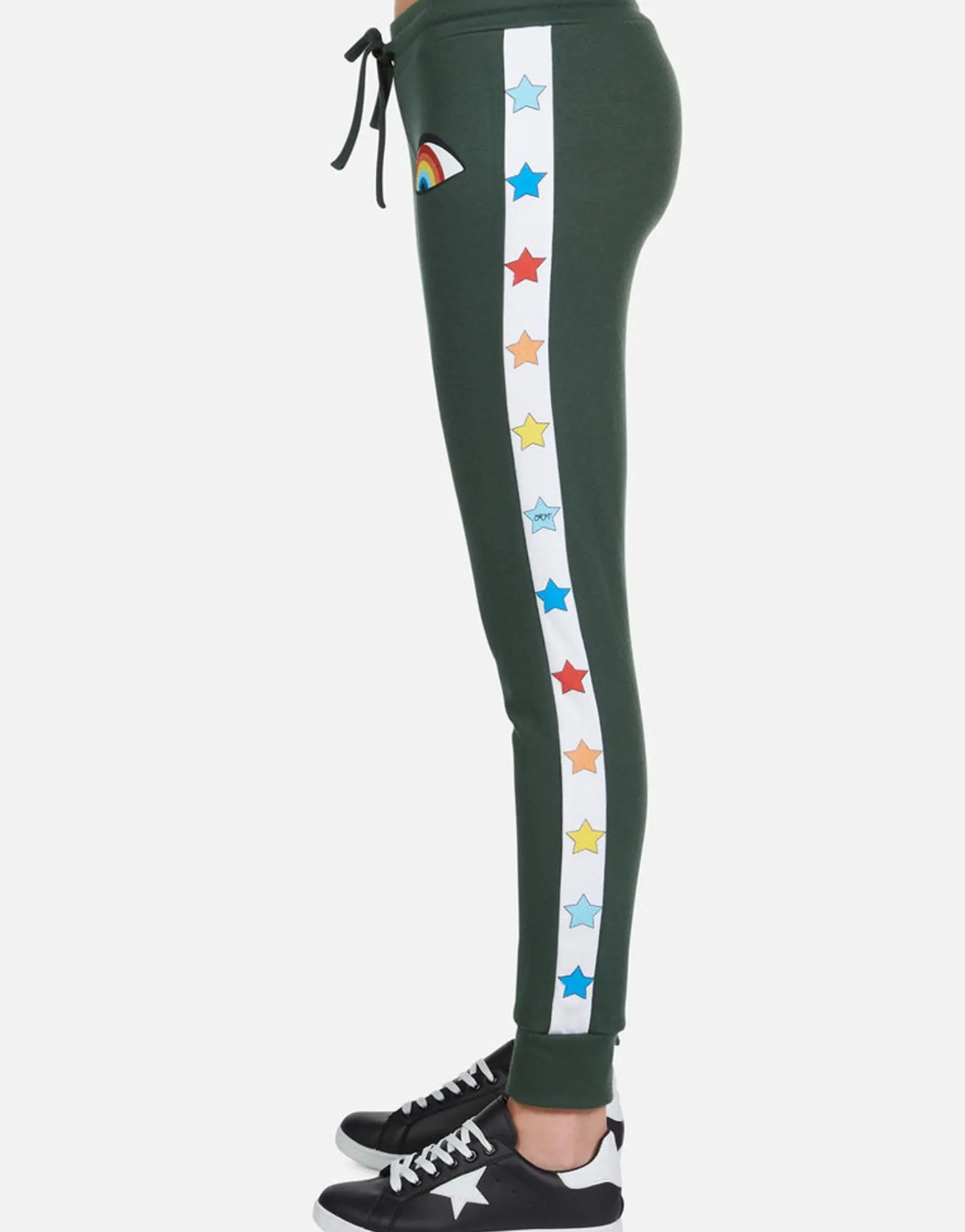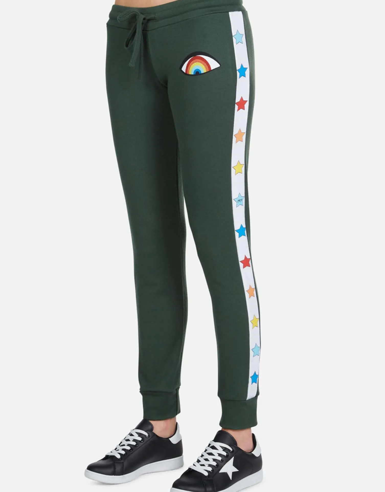 Rainbow Eye Printed On Super Soft Lightweight Sweatpant In Dark Ivy/Creme By Lauren Moshi.