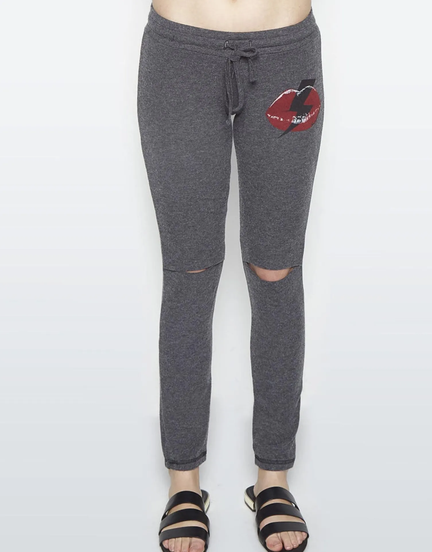 Lightning Bolt Lip Printed On Lightweight Super Soft Women’S Jogger With Knee Slits In Black By Lauren Moshi.