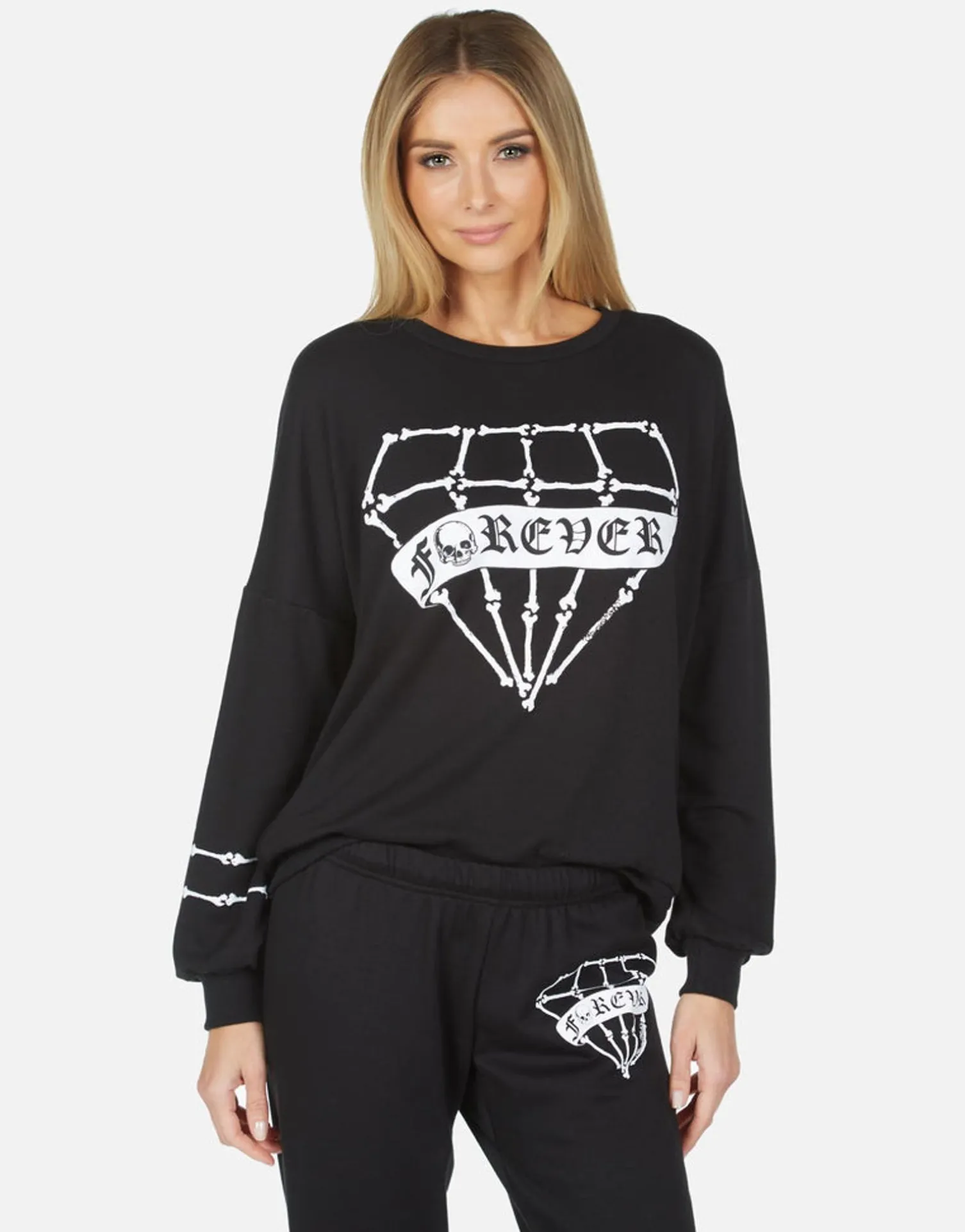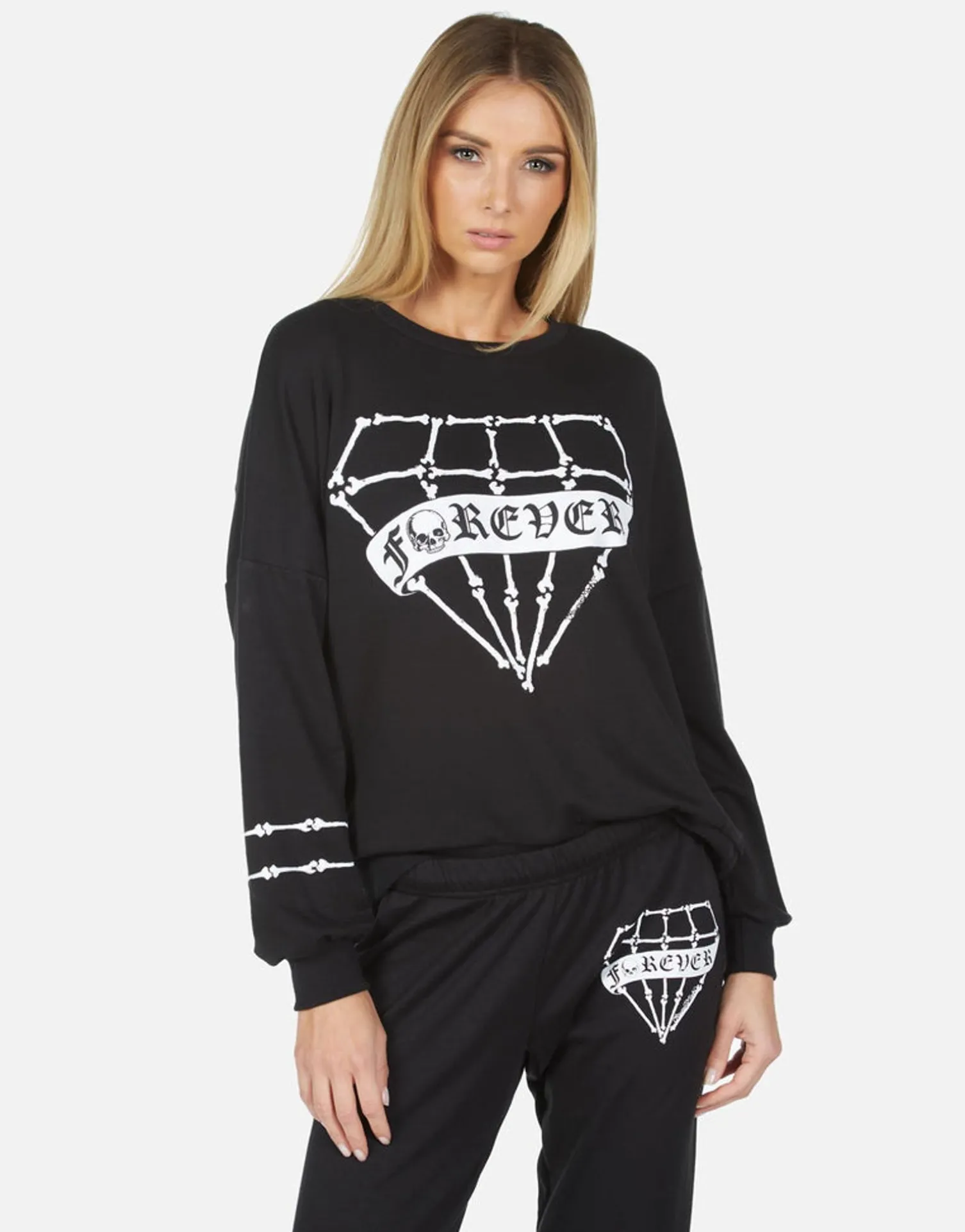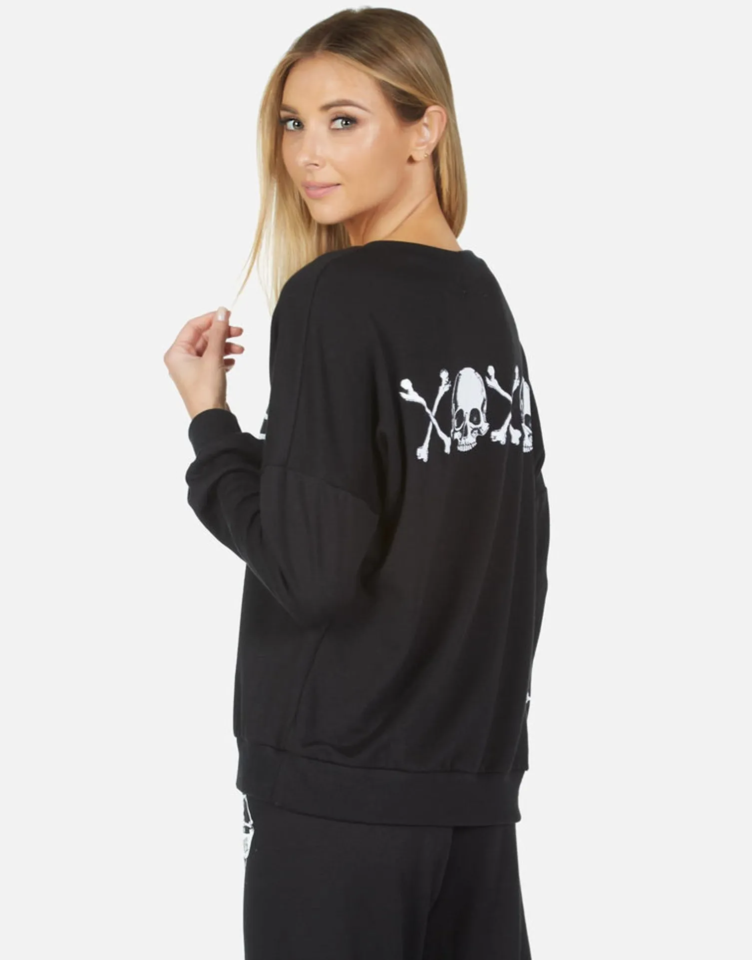 Bone Diamond Printed On Ultra Soft Lightweight Pullover In Black By Lauren Moshi.