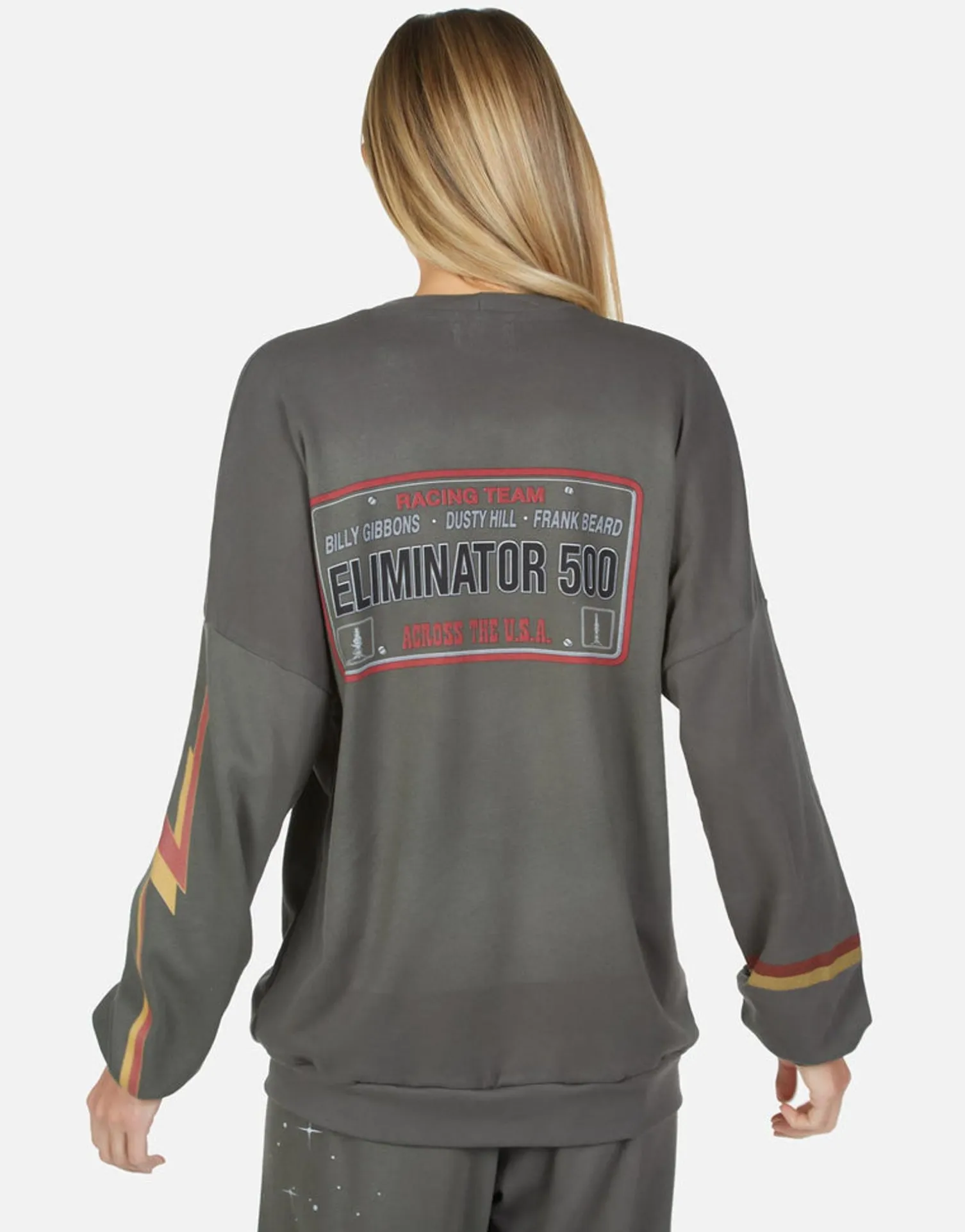 Zz Top Eliminator Printed On Ultra Soft Lightweight Pullover In Vintage Onyx By Lauren Moshi.