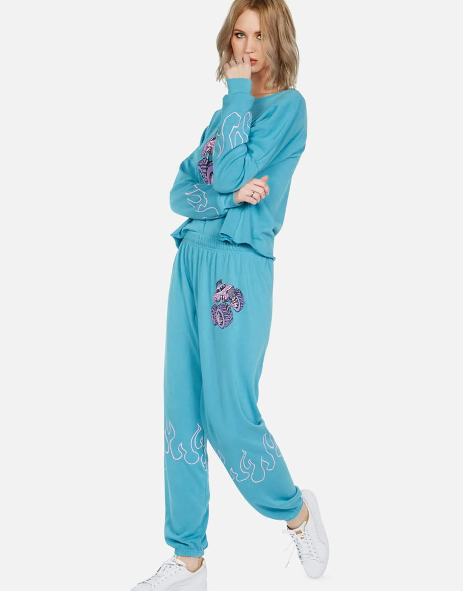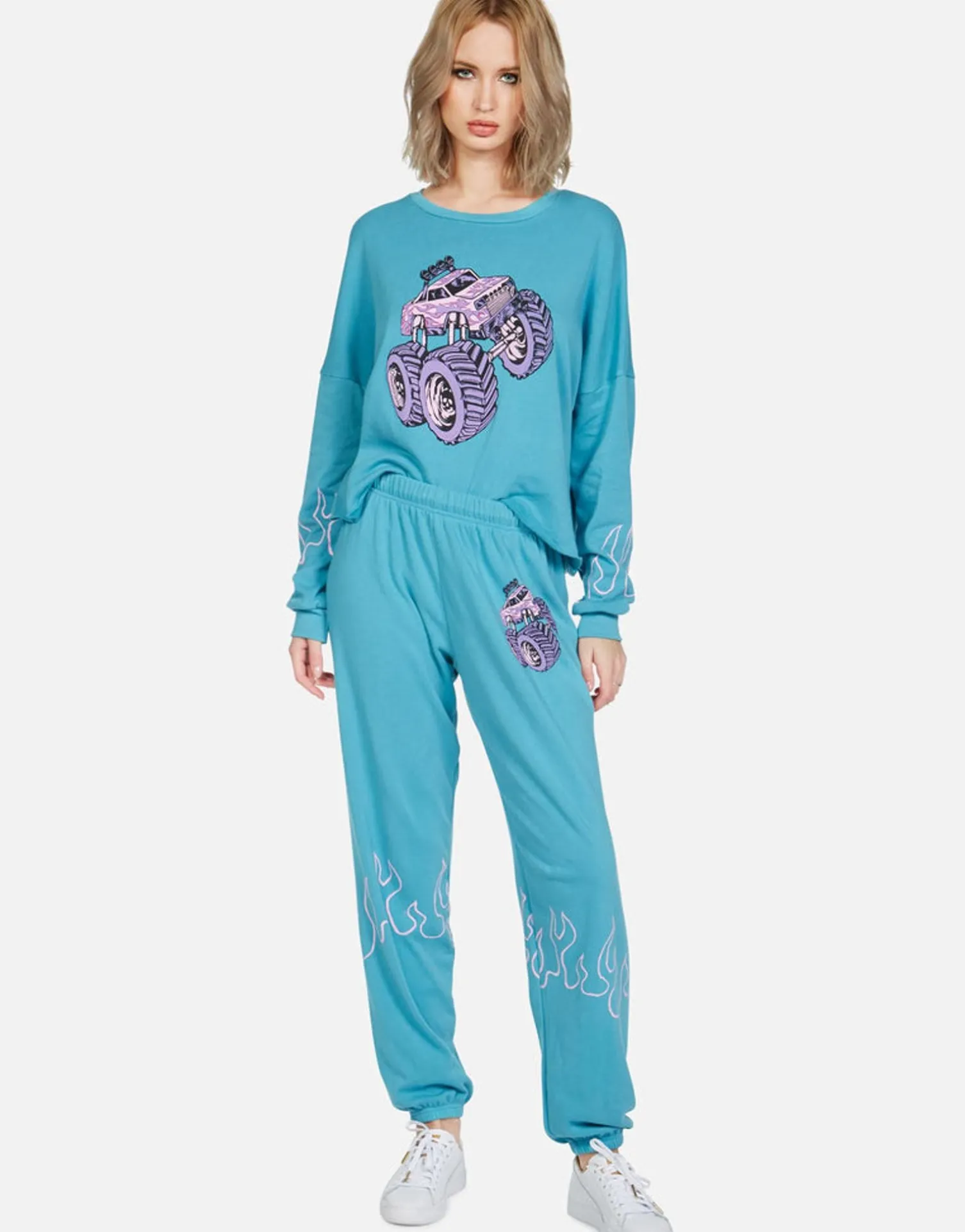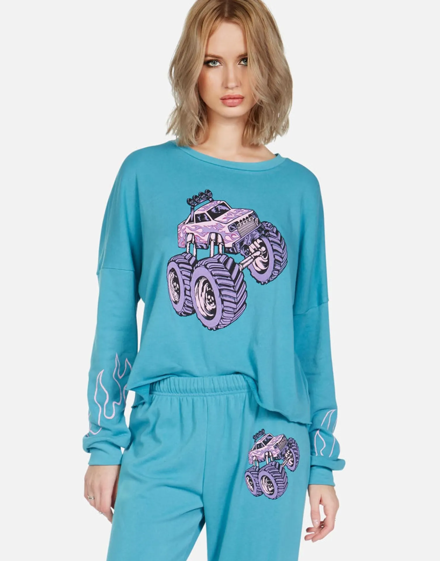 Monster Truck Printed On Ultra Soft Lightweight Pullover In Aqua Sky By Lauren Moshi.