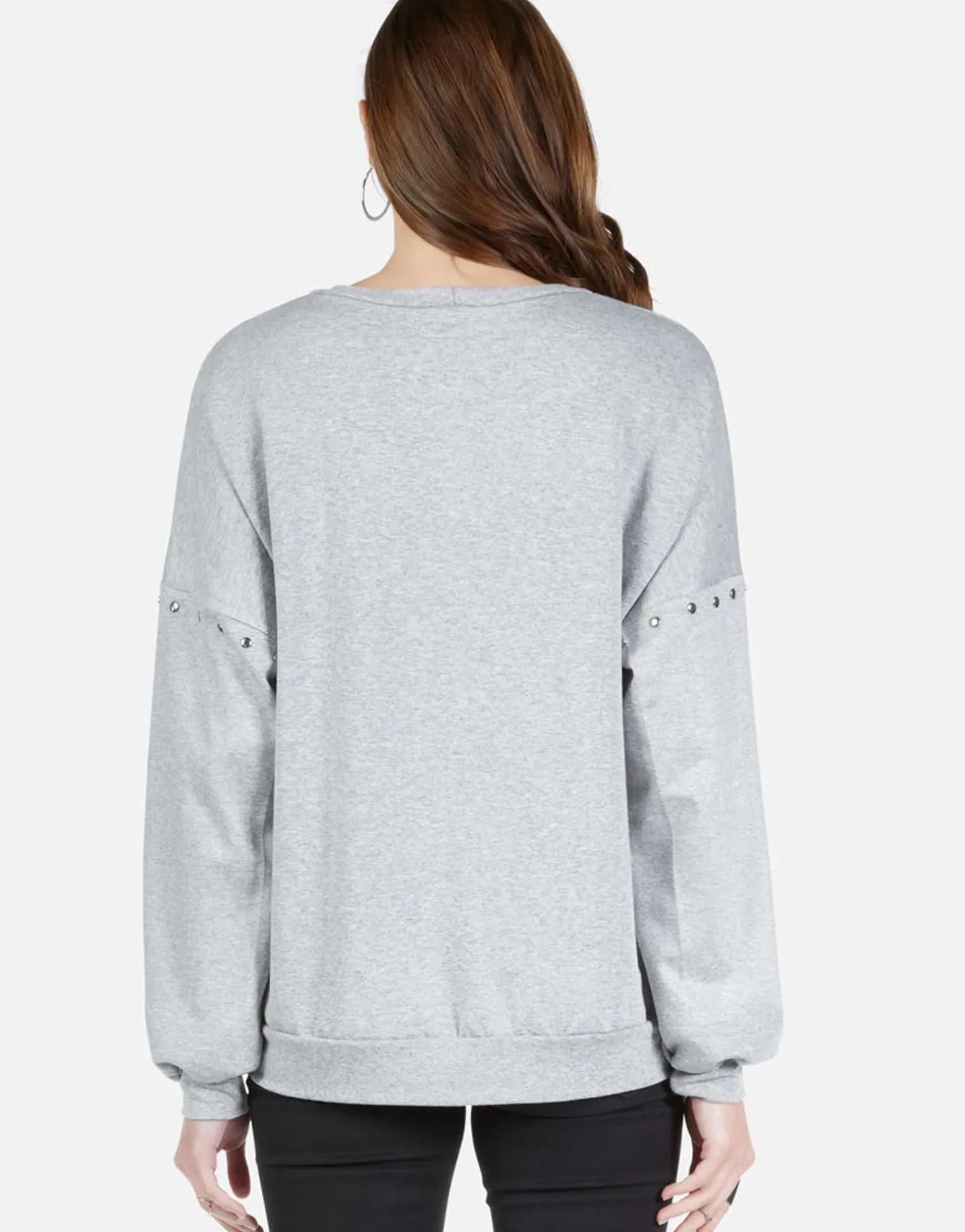 Skull Yin Yang Printed On Ultra Soft Boyfriend Pullover In Heather Grey By Lauren Moshi.