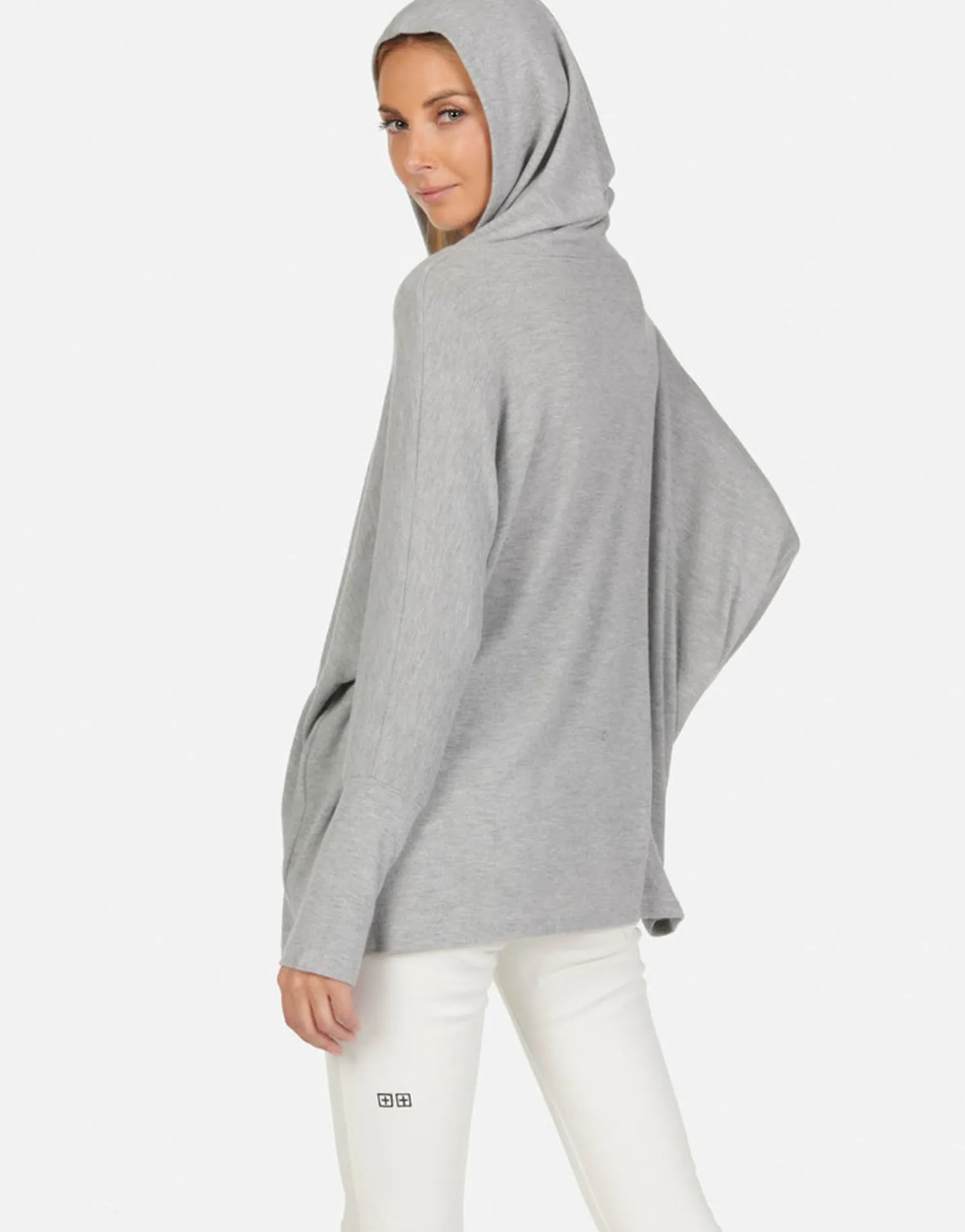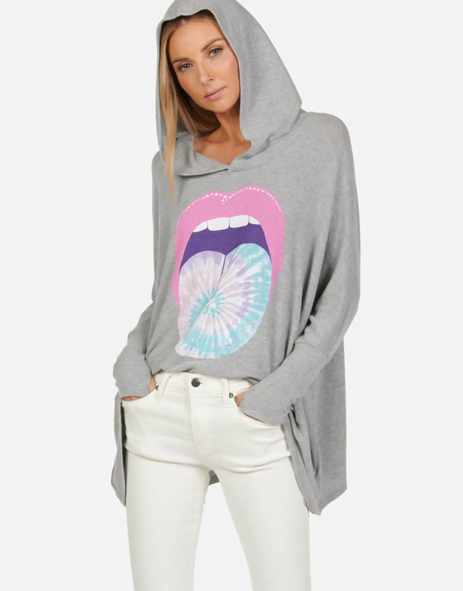 Tie Dye Tongue Printed On Ultra Soft Lightweight Hoodie In Heather Grey &Amp; Jet Black By Lauren Moshi.