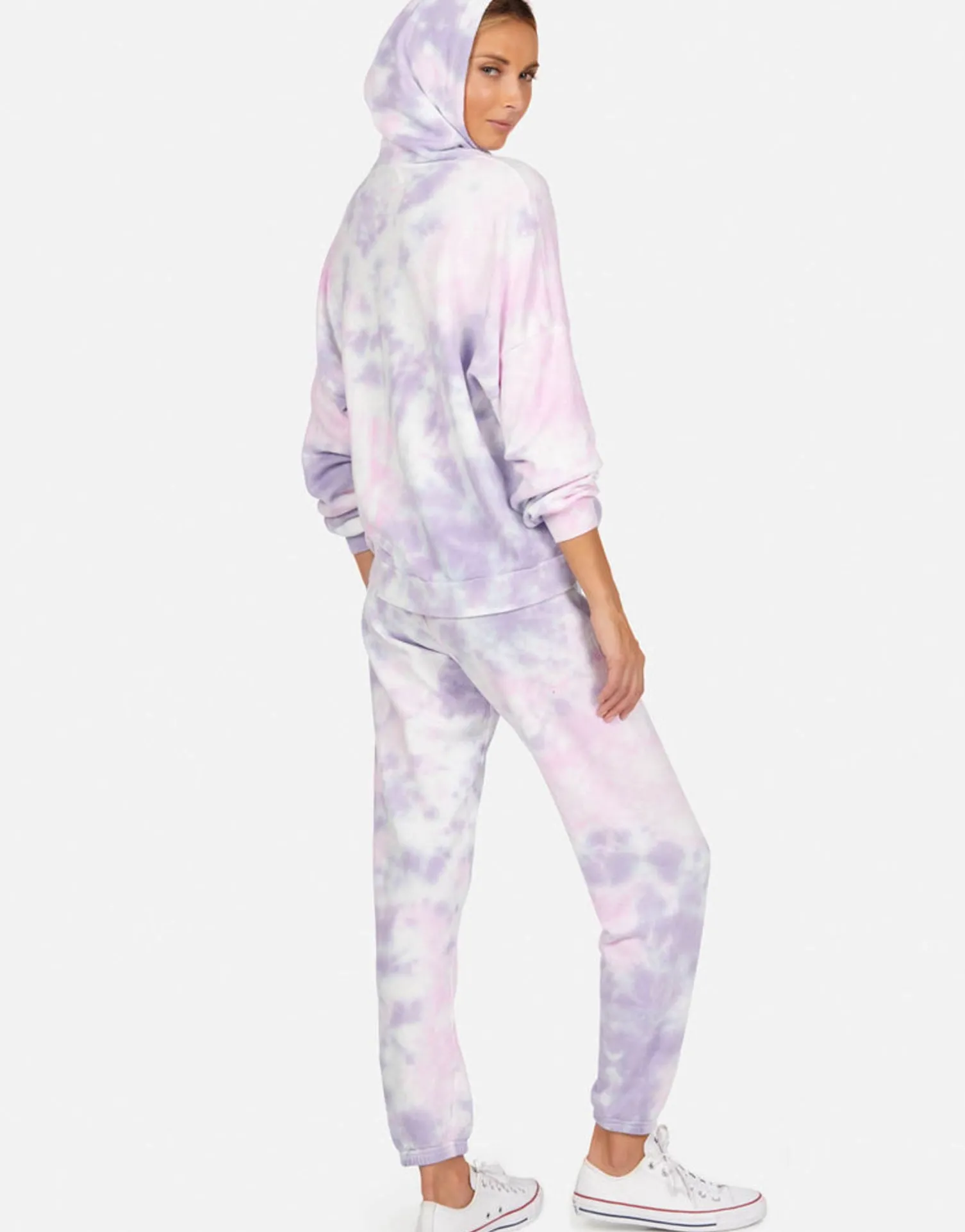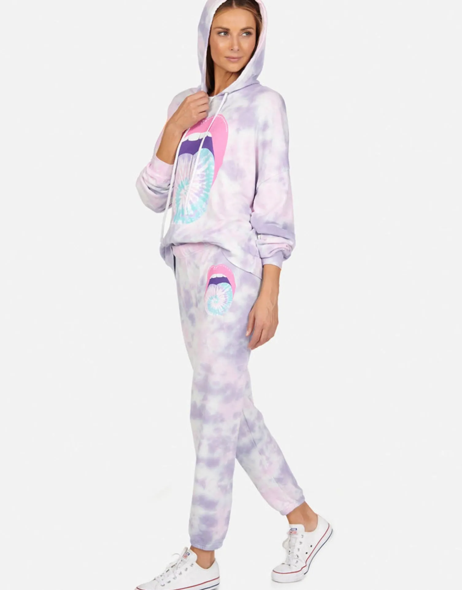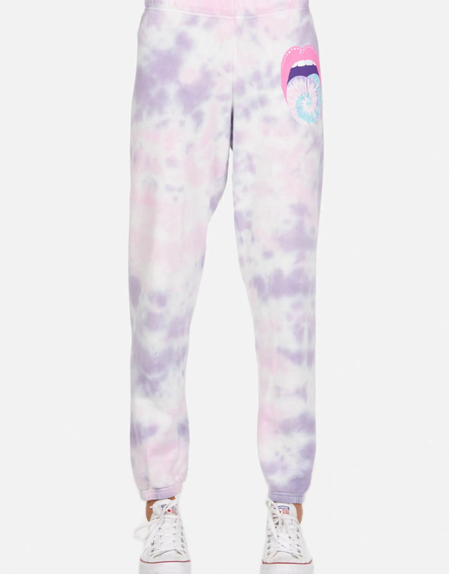 Tie Dye Tongue Printed On Ultra Soft Lightweight Sweatpant In Pastel Sky By Lauren Moshi.