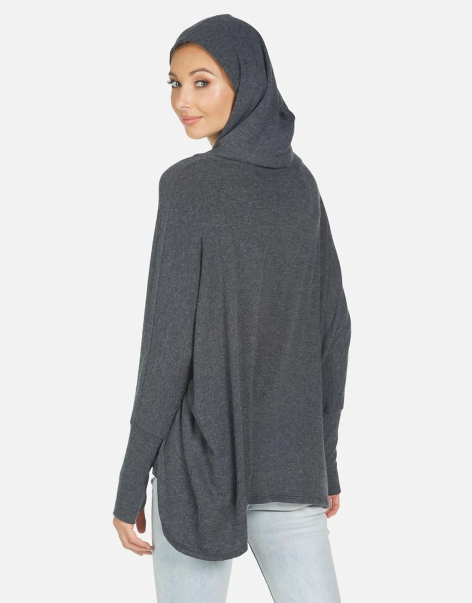Tiger Tongue Printed On Ultra Soft Lightweight Hoodie In Heather Black By Lauren Moshi.