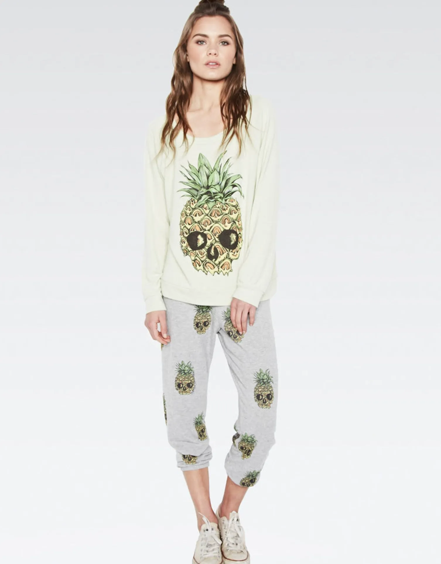Mini Color Pineapple Skulls Printed On Ultra Soft Lightweight Sweatpant In Heather Grey By Lauren Moshi.